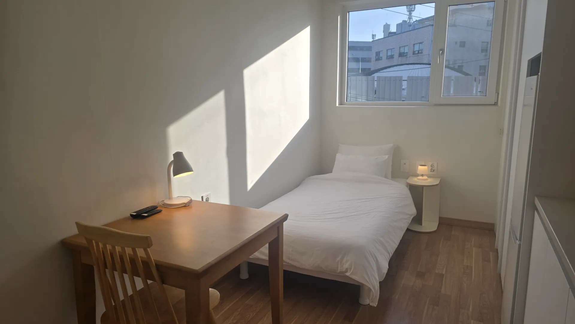 신축 건물입니다 . 햇빛이 잘드는 밝은 숙소입니다 . 전철역에서 8분 거리,버스정류장에서 3분거리입니다 .전통시장과 매우 가깝습니다 . 24시간 자유롭게 출입하실 수 있습니다 . 택배나 배달을 호실 문앞으로 받으실 수 있습니다 . 1층에 관리실이 있어서 입실과 퇴실 전후에 짐을 보관할 수 있습니다.